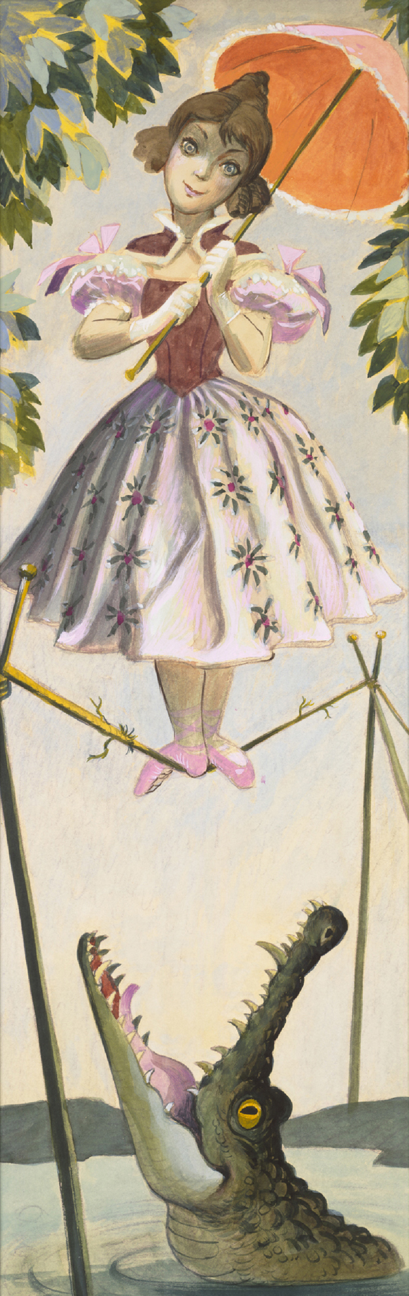 A quick look around the room confirms Walt’s accurate summation of Marc’s talent. The walls are adorned with iconic Disney female characters Marc designed and animated. They range from Cinderella, Tinker Bell and Alice (from Wonderland), to several evil ladies, including Maleficent from Sleeping Beauty and Cruella de Vil from 101 Dalmatians. According to an exhibit note, Marc conceived Cruella as a combination of Bette Davis, Rosalind Russell and Tallulah Bankhead.