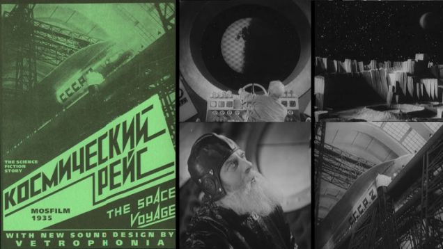 As noted by the Silent Film Festival in their program capsule: “The Soviet Union was serious about its science fiction, bringing in rocket scientist Konstantin Tsiolkovsky as a technical consultant on Cosmic Voyage. Tsiolkovsky designed miniatures for this big budget project that enjoyed the full backing of the Communist Youth League. A trip to the moon, what better way to inspire the youth of a nation! Set in 1946 (a mere 10 years away!), Cosmic Voyage portrays the Soviet space program fractured by warring factions—those who want to play it safe and those who are eager to go to the moon. Professor Sedikh (of the pro-moon-trip faction) is considered too old to lead the first manned moon flight, but he and his assistant Marina elude the naysayers and blast off on their mission, aided by a boy scout (Andryusha) and a fluffy Cat. Cosmic Voyage is a wonderful adventure with hilarious subplots and remarkably sound science. In fact, the film is visionary in its relevance to real-life developments in space exploration. Cosmic Voyage had a brief release in early 1936 before Soviet censors took it out of release. Scenes of cosmonauts hopping across the low-gravity lunar surface didn’t fit with their ideal of socialist realism.”