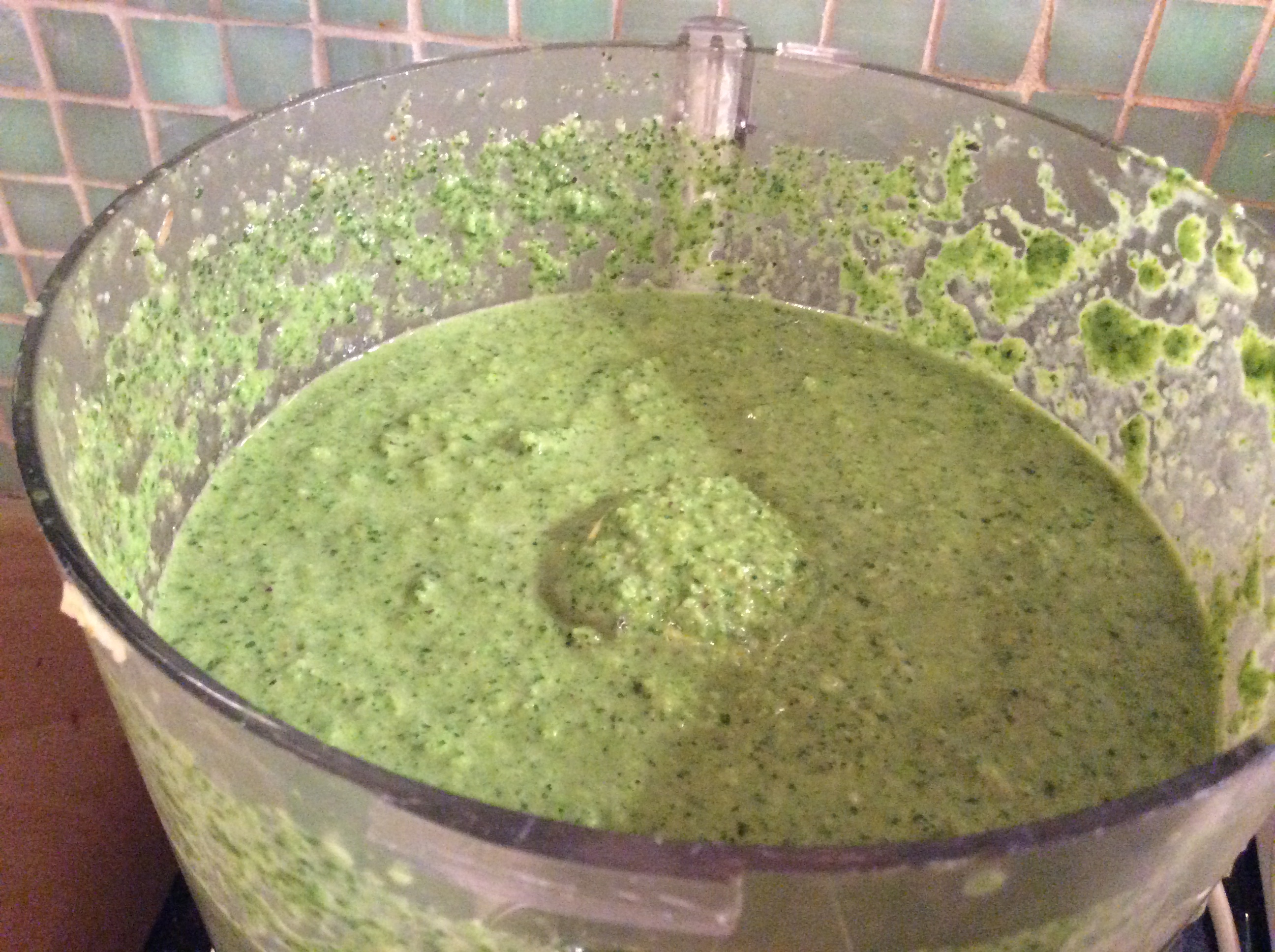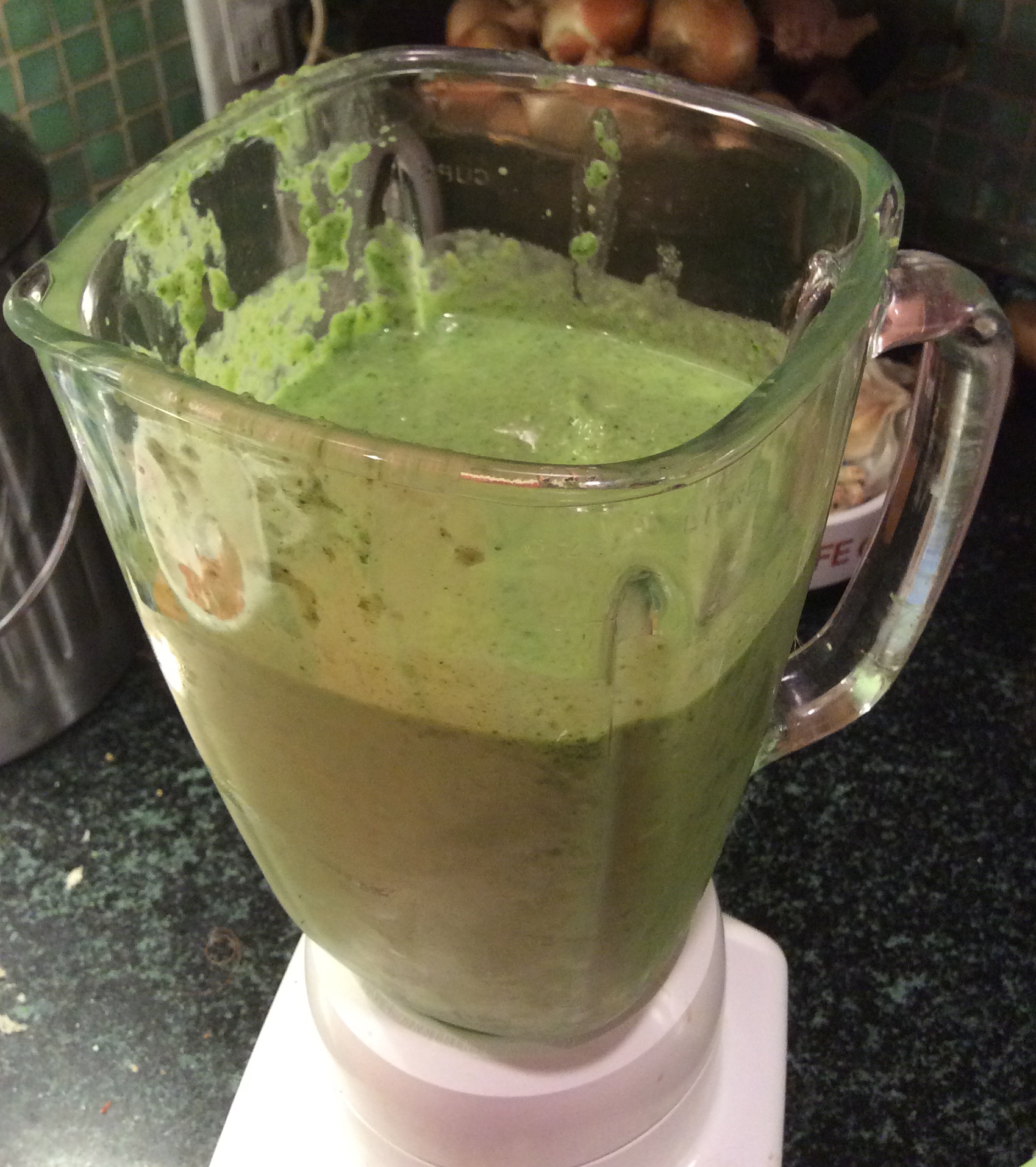 I looked at what I had from the market and decided to go green. When I read the list of ingredients to Anita, she said, “That’s an awful lot of things, I think you should cut it down.” I’ll leave that for you to decide (as I say in the Notes on Ingredients below), but it is sort of a mix-and-match list. If there was a starting point, it was Yotam Ottolenghi’s green gazpacho recipe in Plenty , though that was really more of starting point than an actual recipe.