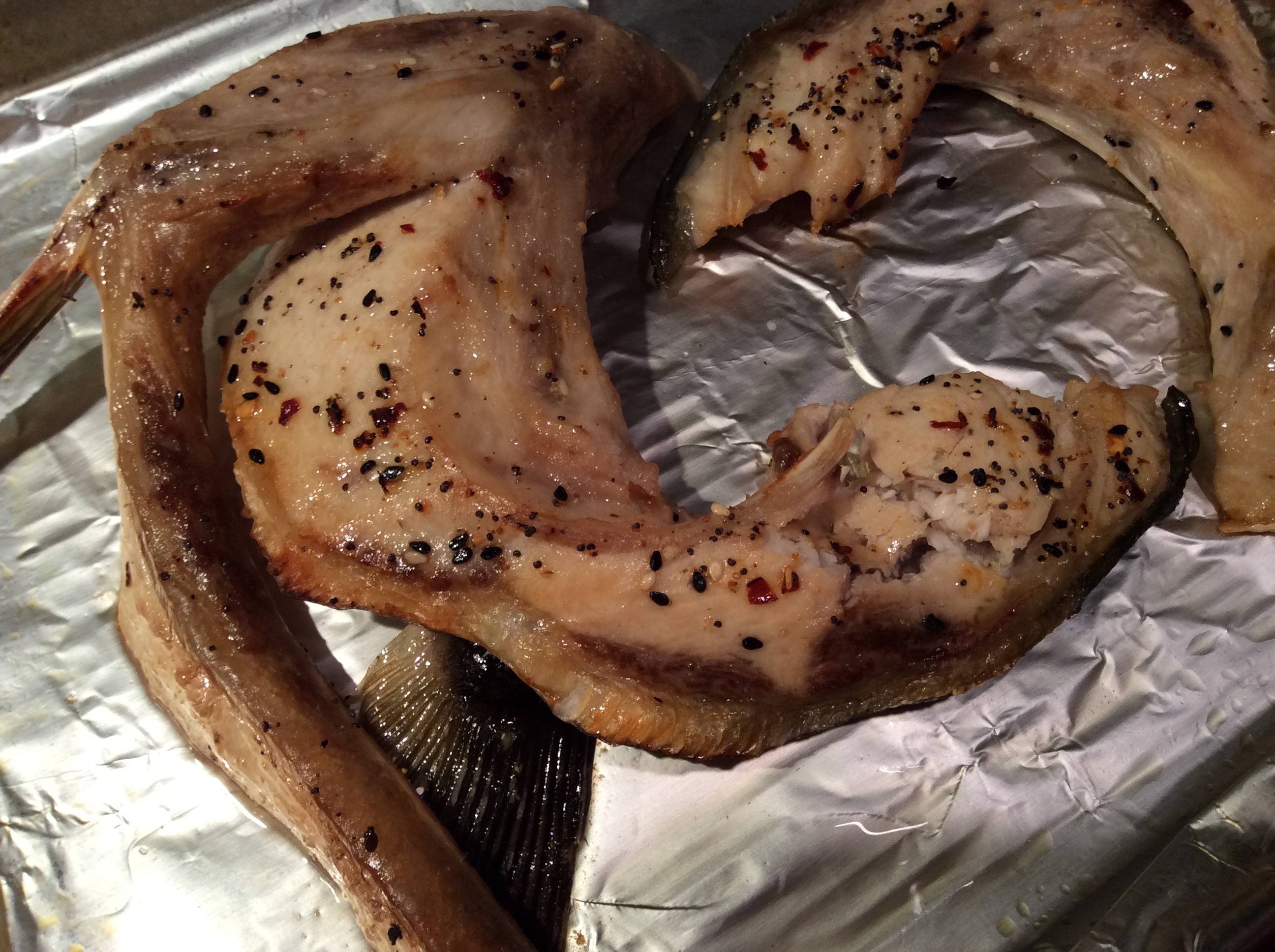 Neither of these was going to work— what could I make? When I saw some hamachi kama (yellowtail collar) at the West Berkeley Bowl, I figured I was on some kind of fishy-bits roll and here was my answer. And the collars were $5 a piece, giving me a little over a pound for $10.