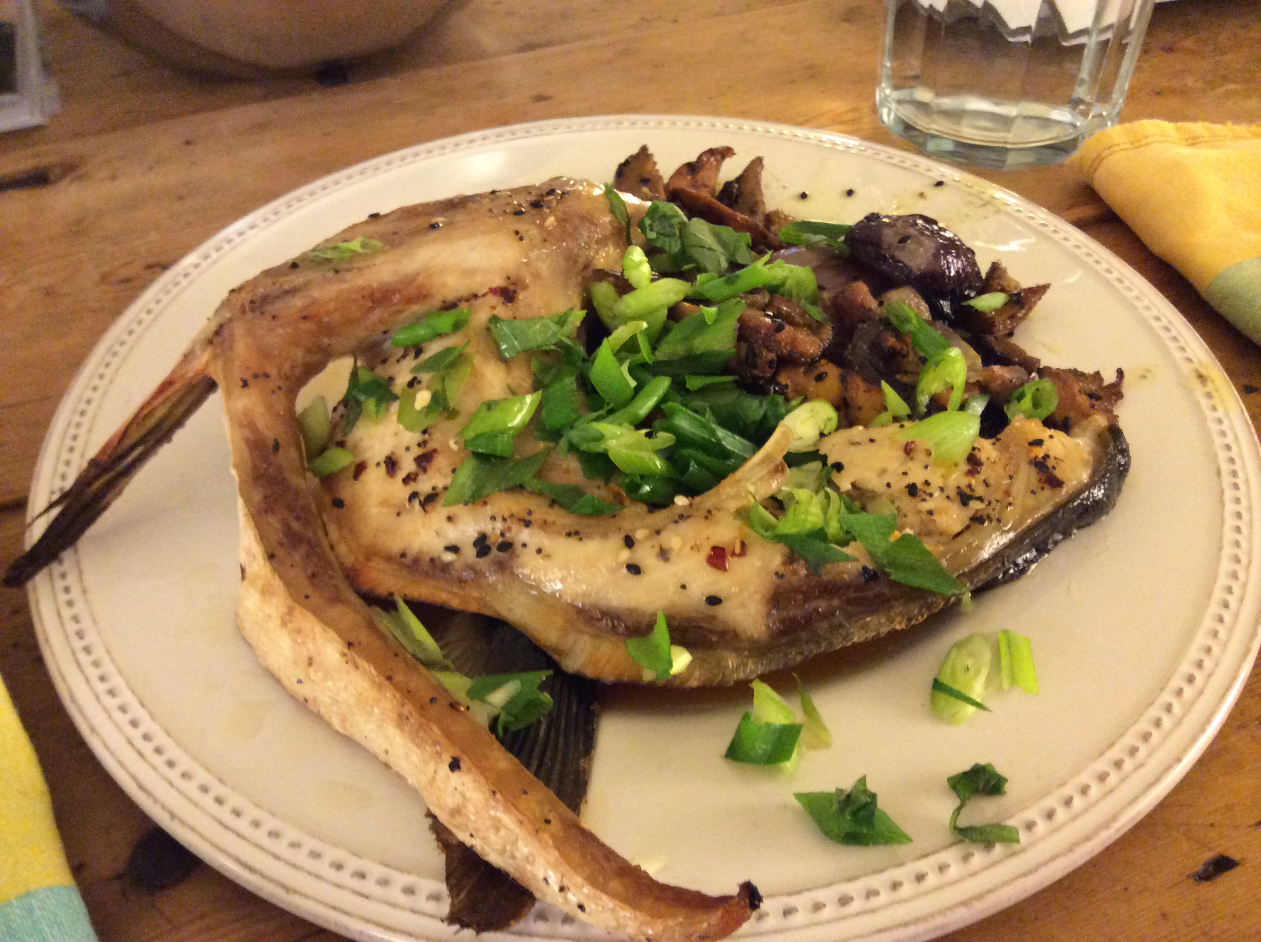 I served this with some chanterelles, Cabernet onions, and pancetta that I’d roasted off. You could go with some chard or kale or broccoli rabe, or another green.