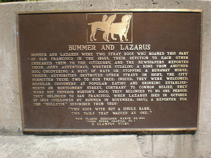 Bummer and Lazarus Dry Gin is named after a pair of canine companions, contemporaries of Emperor Norton. These two were darlings of the local press at the time, mostly due to the fact that they were the champion rat-catchers of their day. (A plaque located in Redwood Park Grove, next to the Transamerica Pyramid, tells the tale.) When Lazarus died, legions of grief-stricken admirers turned out for the service. When Bummer passed on, Mark Twain wrote a eulogy. These were some dogs, winning the hearts and admiration of a city with rodent issues and a fondness for colorful characters. Some sources claim that the two remained side by side, thanks to a taxidermist, until they were destroyed in a fire.
