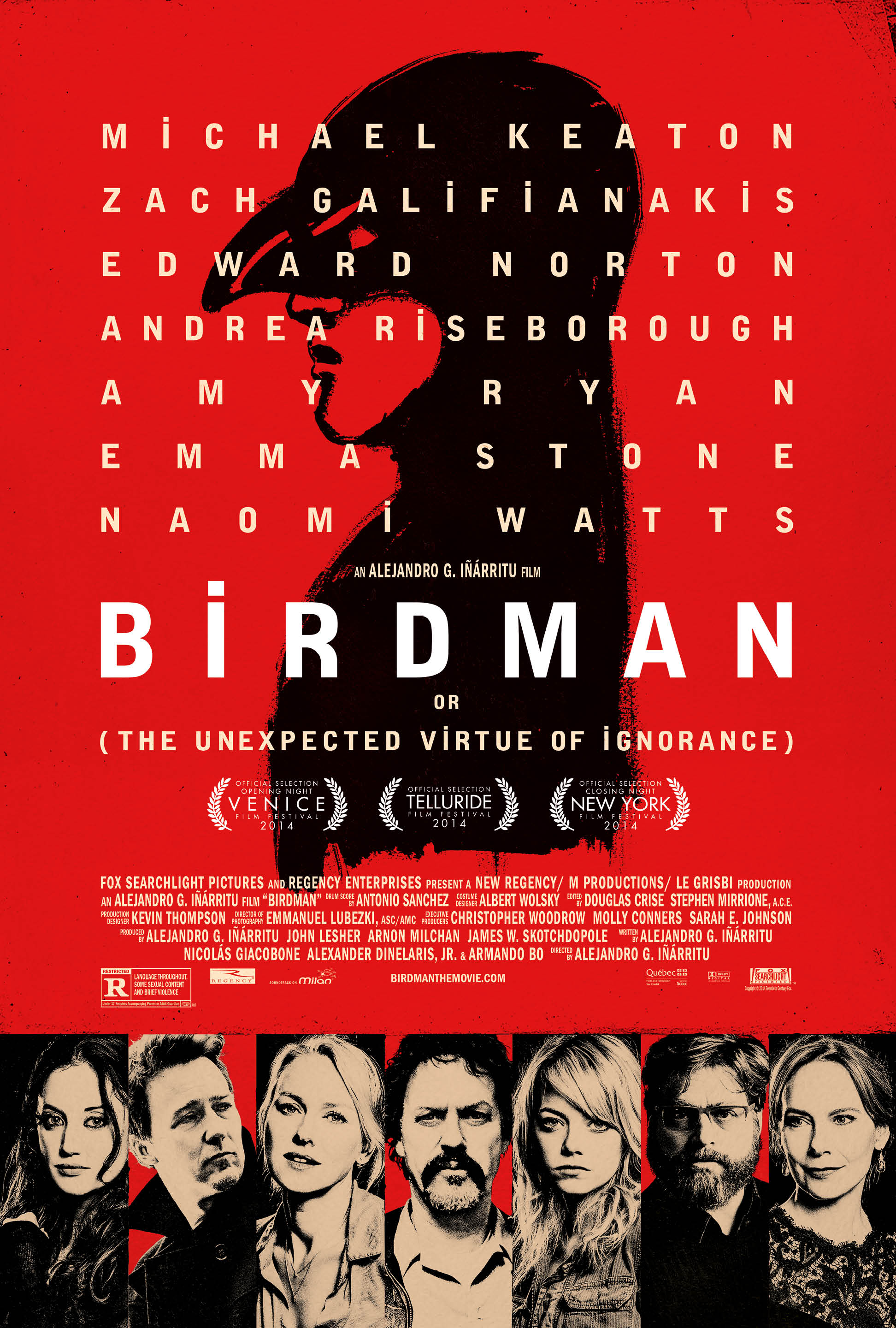 Birdman is the latest, best and smallest (in physical if not imaginative scale) film to date by Alejandro González Iñárritu, the Mexican director who started out being as ambitious as possible in a trilogy of movies with his erstwhile creative partner, scenarist Guillermo Arriaga. First in the consecutive Mexico City miniatures of Amores Perros , then in the intercut multi-strand dramas of 21 Grams and globe-trotting Babel , the duo seemed to be aiming for All of Life in 150 Minutes or So—to results often potent, even dazzling in the moment, but murkier as a theoretically profound whole. After their acrimonious parting of ways, each made a lesser solo project (Arriaga another sprawling ensemble piece, the poorly received The Burning Plain , while Inarritu’s Biutiful was an over-melodramatic vehicle for an admirable Javier Bardem) that suggested they might have trouble finding their feet without one another.