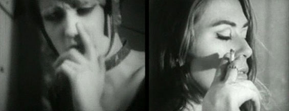 Amidst the plotless character panels of ersatz Chelsea Hotel life in Chelsea Girls (whose relative commercial success piqued mainstream curiosity toward the era’s “underground” cinema), she operates on a different plane entirely. Impossibly, vacantly beautiful Nico does her own makeup; brain-dead Eric Emerson, the Factory’s most versatile boytoy, babbles in a stoned haze. Other “Superstars” are frenetic, each straining to be more outrageous than the other, improvising toward some sort of accidental drag-camp variation on Sartre’s No Exit . But in her sequence (as, supposedly, “Hanoi Hannah” interrogating captive soldiers—though you’d scarcely guess from the barely-intelligible dialogue), Woronov sits in the dead middle of the screen, dead-still save for sudden moments of lashing violence. Fingers languorously holding a cig are often her only moving muscles.