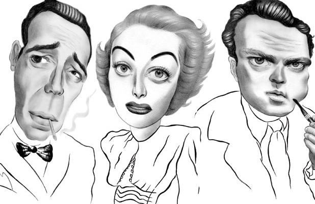 Bailey breaks the movie industry down into four periods, profiling boldface names, noteworthy nightspots (helpfully flagging the few still open for business) and particularly pickled productions from each. Organization is somewhat haphazard; given that John Ford won multiple Oscars before Pearl Harbor he’s arguably a product of the Studio, not Post-War, Era, while Dean Martin seems out of place in the New Hollywood section. Hemingway sketches every entrant in an amusing if idiosyncratic style, his John Cassavetes resembling David Schwimmer.