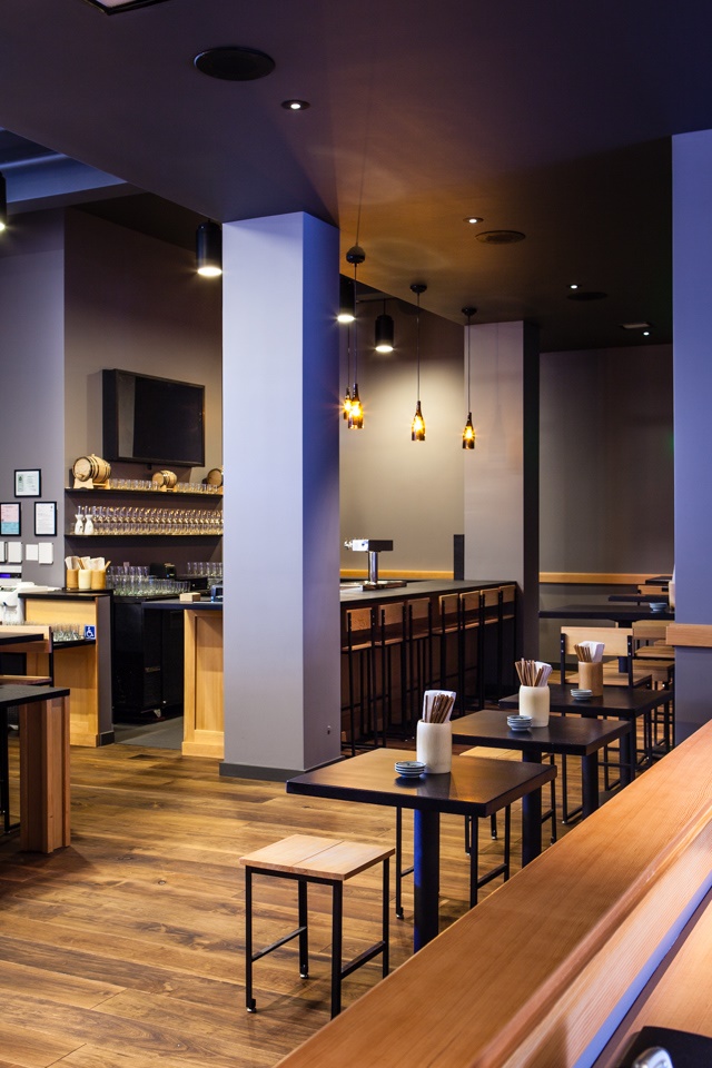 Erin says the first time she came into the space (then a market), she “knew immediately” that it would one day be the site of their restaurant. Now, she says, “It’s my sushi living room!” Once the building became available, the Archuletas and their architect transformed the space into its present format, with sushi bar and table service in front, bar seating and open kitchen in the back.