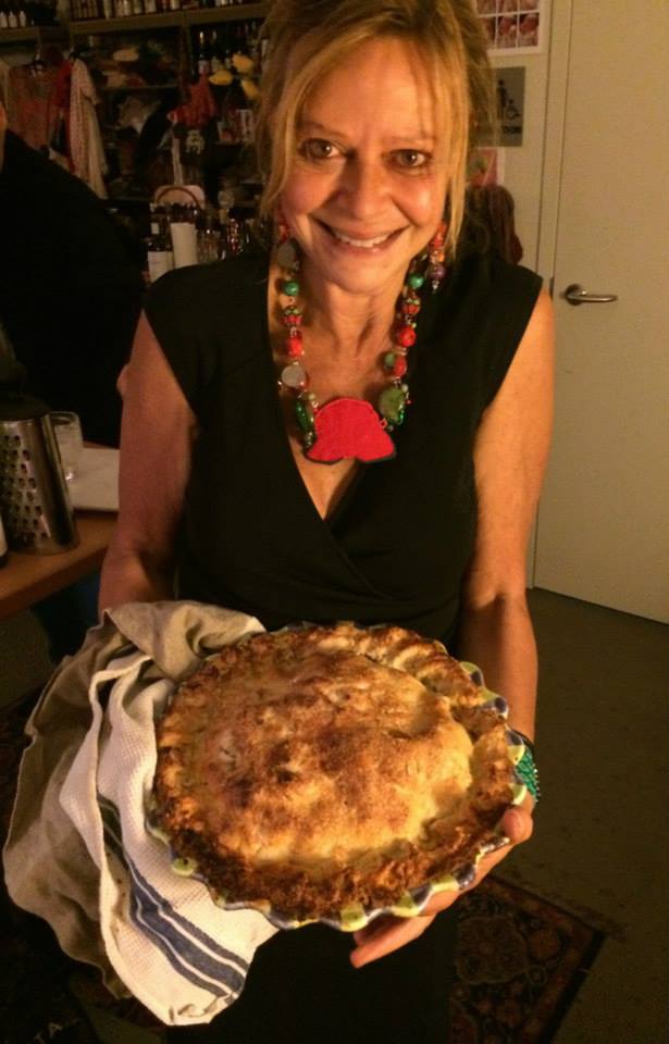 Joyce Maynard and her Labor Day apple piece, at Salon Dinner No. 43. April 19,2014. Photo by Cari Borja.