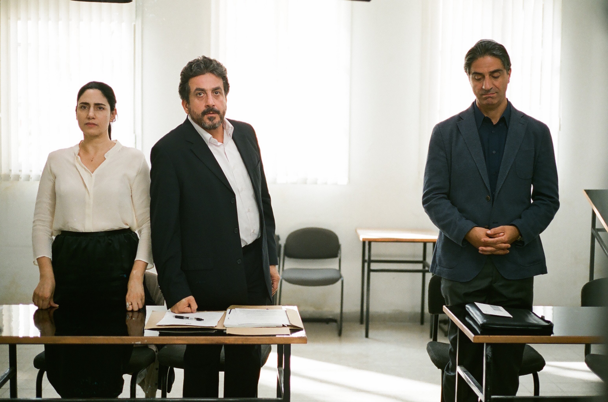 Viviane (Ronit Elkabetz), Carmel (Menashe Noy) and Elisha (Simon Abkarian) in Gett: The Trial of Viviane Amsalem . Courtesy of Music Box Films.