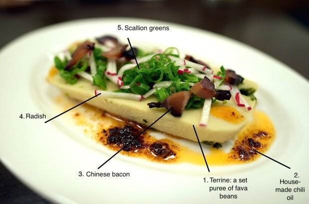 Wu loves fava beans and demonstrates their role in various dishes. We also watch as he makes a Chinese sashimi with marinated fluke; beet salad with thousand-year-old egg; and a pancake wrapper made from eggs, stuffed with olives.