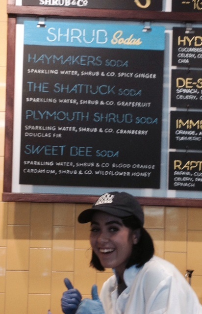 I sampled cranberry, apple, grapefruit—and ginger, which Garcia refers to as “the palate destroyer.” (That may be, but it’s also their best seller, accounting for 40% of their sales.) I’ll admit that I had a few reservations about the tasting session. I’m not a big fan of vinegar, to be honest. But I have to agree with Cecchini in the way he describes the taste of shrub as a “revelation: shockingly refreshing, tart, and fruity….” The fruit flavors exploded, the vinegar added tartness, but stayed in the background, and the addition of sparkling water gave each sampling a celebratory fizz. (This was a post-colonial, spirit-free tasting, by the way.)