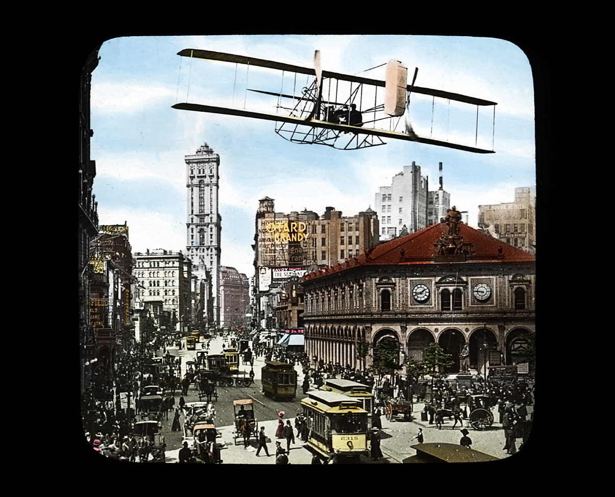 The famous illustrated songs with their deranged hand-colored illustrations are among the hundreds of songs and ballads introduced in the nickelodeon, where audiences were famously invited to “join in the chorus.” The best known nickelodeon songs—like “Bicycle Built for Two,” “In My Merry Oldsmobile,” “Has Anybody Here Seen Kelly?” and “The Oceana Roll”—survived as popular recordings and material for Hollywood movies. And for a while, important Tin Pan Alley songwriters, including Jerome Kern and Irving Berlin, got their start plugging their songs on the nickelodeon stage. The idea was to get an audience to sing your song in the theater, and then buy the sheet music in the lobby so they could play it at home on their parlor pianos.