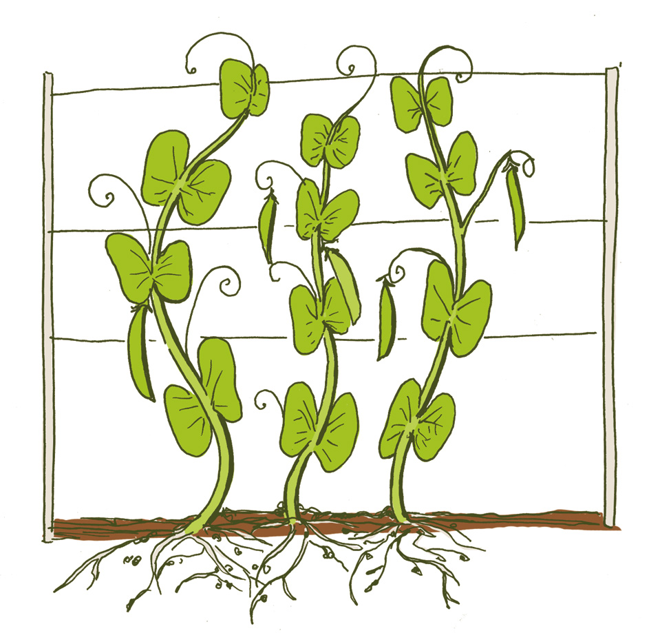A sturdy trellis 6 feet (1.8 m) high should do the trick—put the trellis in place before you sow. You should plant the peas straight into the soil there they’ll be staying; they have delicate root systems that don’t do well when transplanted. Sow the seeds a few weeks before the last frost.