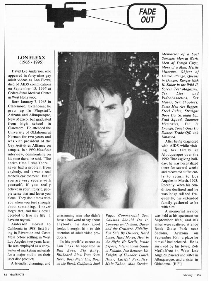 The [“Fade Out” obituaries] are from Mandate. One of the things I found touching was that it was the industry’s effort to preserve itself, to preserve people that even other gay men found disposable.