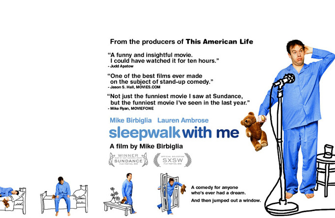 Mike Birbiglia is funny comedian and writer who directed his first feature film, Sleepwalk With Me in 2014. Co-written and produced by Ira Glass, his regular collaborator on National Public Radio’s The American Life, it relates the story of struggling with a relationship gone bad, severe sleepwalking and the stalled career of a stand-up comedian.