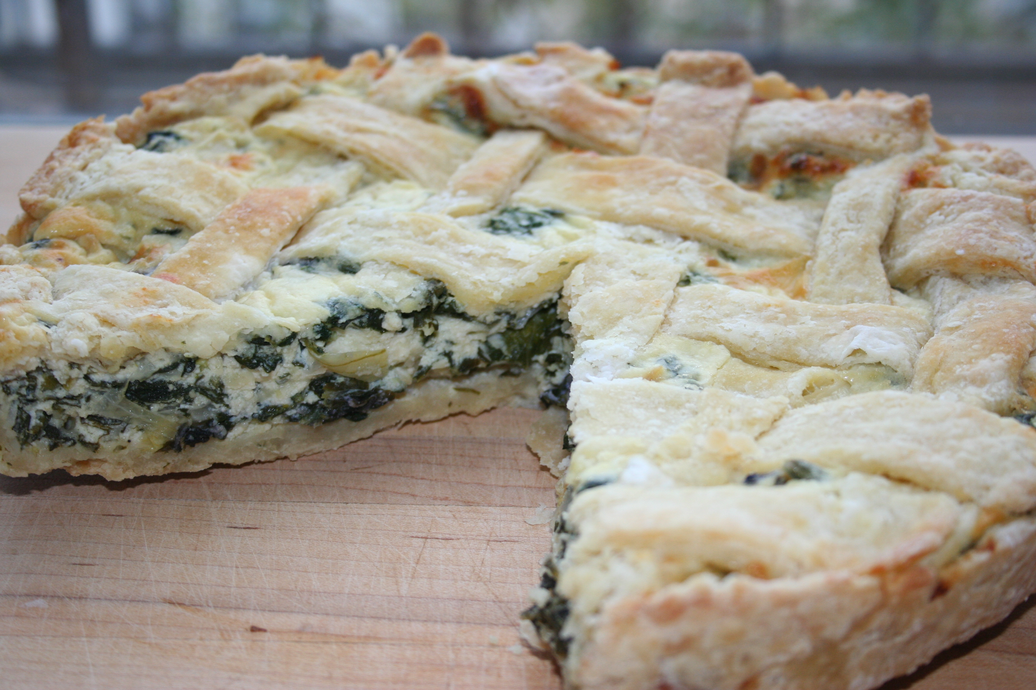 This version was inspired by my friend’s family Corsican grass pie. Because we don’t have the wonderful range of wild edible weeds that they do, I include ricotta and a melting cheese like fontina or Gruyère to round it out. My suggestion is to use grass-fed ricotta if you can get your hands on it, as it really makes a difference in terms of flavor. Depending on the season, I will substitute other wild greens as I find them. Dandelion greens, lamb’s-quarter, daylilies, and garlic mustard all work well.