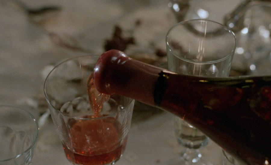Finding the bottles of rare wines used was a challenge, especially the red wine, Clos Vougeot Louis Latour. Even recent vintages can be scarce. The bottles were filled with apple juice, though Miss Audran insisted that the bottles she took swigs from while cooking had to have the real thing. She said that she was not a good enough actress to pretend with apple juice.