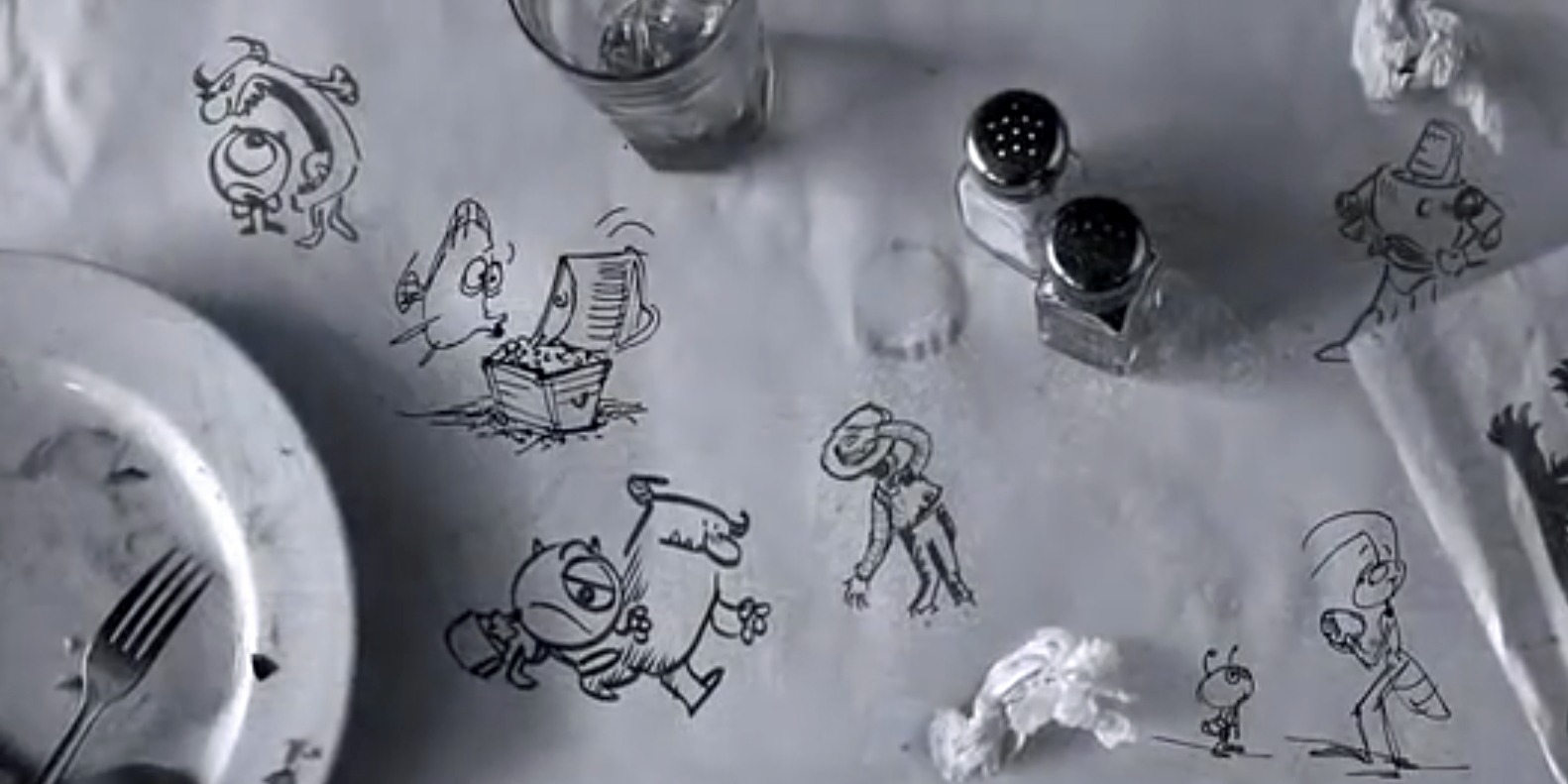 Unfortunately, when they took their brilliant script ideas to Disney, the pitch session didn’t go well. Disney executives thought the cowboy was a nasty jerk, especially in the scene where Woody pushes Buzz out a window. (The pitch included an “animatic,” rough sketches that illustrate the action, set to a basic voice track. That clip was shown and Woody was indeed nasty.)
