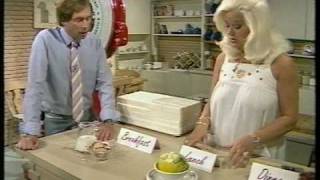 Watch Diana Dors as she talks to Nick Owen about her day’s food menu, calorie content, etc.  Marilyn Holden of Jameson’s Family restaurant, shows how to make Apricot Chiffon dessert. Recipe is explained.