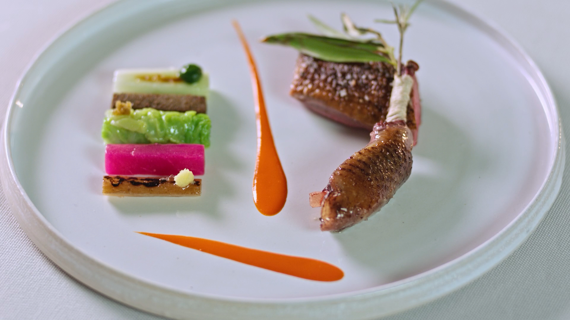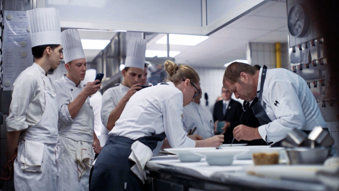 In the film, director Rémi Anfosso brings us closeups of the most beautifully plated dishes, every herb, and leaf in place. Pigeons are butchered. Fish is freshly caught off the dock. Sauces are tasted and tasted again. It is engrossing to observe the cooking and to admire the interaction of the skilled kitchen teams, their concentration, and dedication to the work. I could not help but notice how very young the teams were in all the restaurants, and wonder how long they would remain in this kitchen, in this profession. David, of course, seemed cool, collected, and contemplative. He had achieved his dream to go mano a mano with his peers in France. He also was thinking ahead, to how long he could continue this level of intensity in such a physically and mentally demanding field.