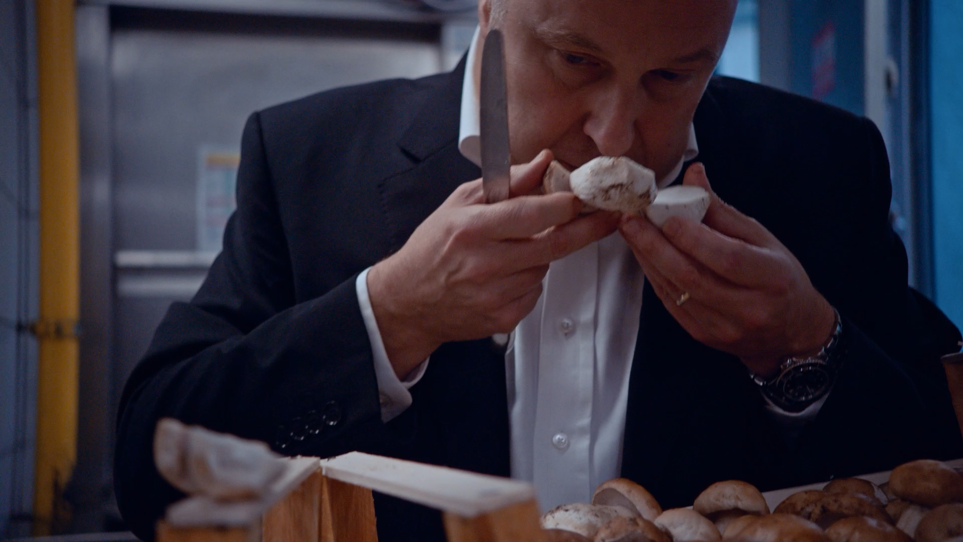 Le Taillevent’s (Paris) Chef Alain Solivéres checking mushrooms