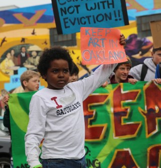 But only three months later, a condo was proposed for the parking lot in the center of the murals that would completely obliterate the art. The community that came together to create the murals morphed into the Oakland Creative Neighborhood Coalition (“Keep Oakland Creative”). They definitely made a “joyful noise” as they converged on City Hall– dancing, drumming, and bearing signs saying “Keep Oakland Culture,” and attending planning meetings to bring equity to the discussion of how Oakland should frame development projects.