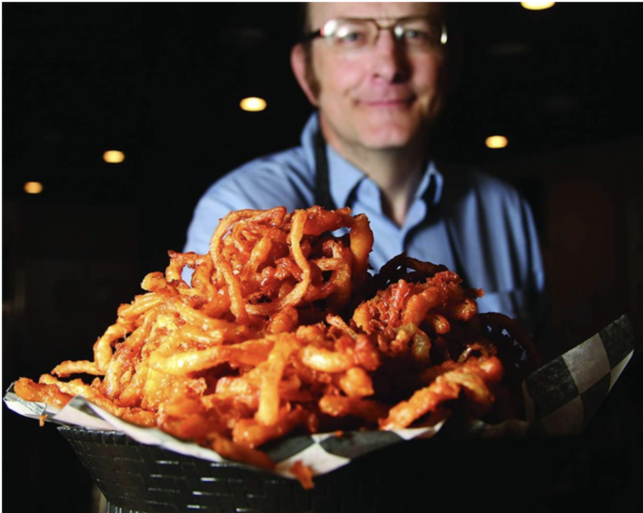 Capp uses his seed money to buy top-notch equipment, pull a crew together, and begin filming at a bar in Wilmont, South Dakota. The taciturn subject of the documentary is a dedicated, quirky character named Larry Lang. Larry has spent his life in restaurants, creating onion rings that people drive from miles around to gorge on; the onion rings that an onscreen shadowy Tom Sietsema, food critic of The Washington Post, describes as “ the world’s best.” The recipe is known only to Larry, and he insists on doing all the preparation himself. Capp will dub him “The Lord of the Rings” when he finishes making his film. That is, if he does actually finish making it.