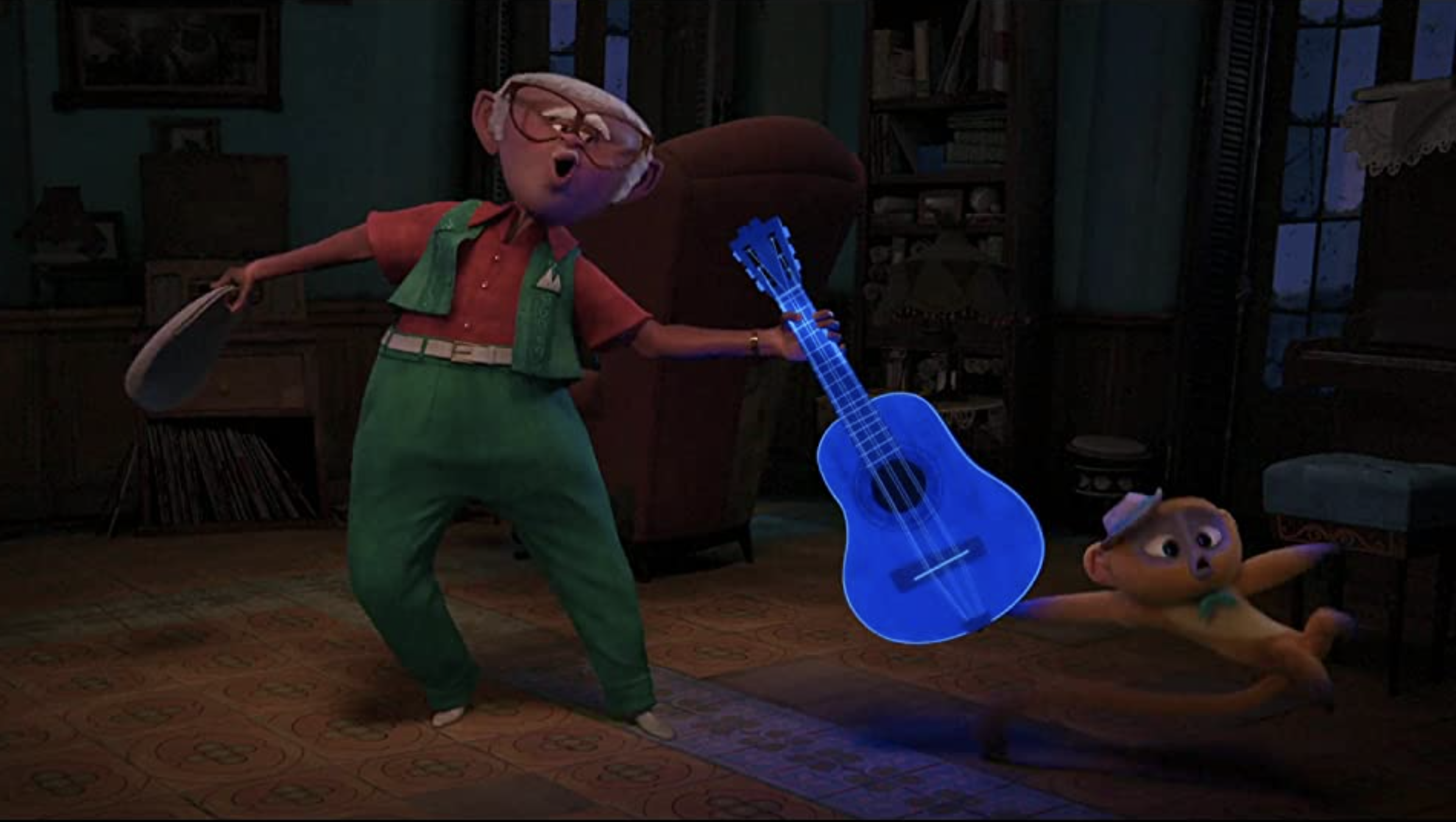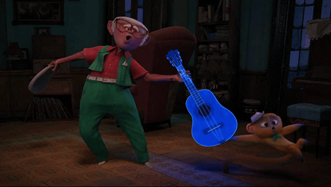 Take the uplifting Mambo Cabana, which Andrés sings as he tries to convince Vivo to let go of his fear and accompany him to Miami. When Andrés starts singing and moving to the rhythm of the mambo, he demonstrates the importance of dance and sensuality in Latin American culture, regardless of age. When you dance, you are ageless. When you fall in love, you are ageless. This idea is expressed beautifully in the song’s repeating refrain, “It’s not too late,” and supported visually when Andrés’ collection of musical instruments starts glowing with a life of its own.