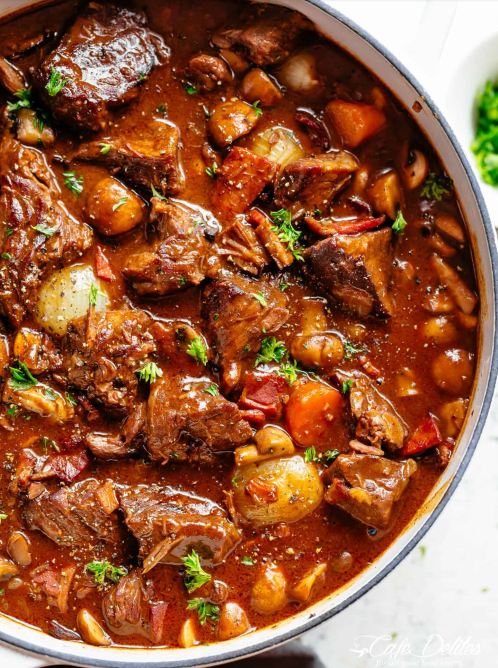 [Beef Stew in Red Wine, with Bacon, Onions, and Mushrooms]