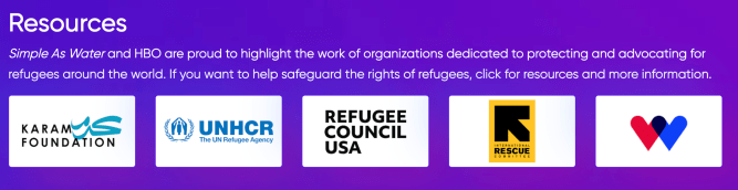 Simple As Water and HBO are proud to highlight the work of organizations dedicated to protecting and advocating for refugees around the world. If you want to help safeguard the rights of refugees, click on resources below and more information.