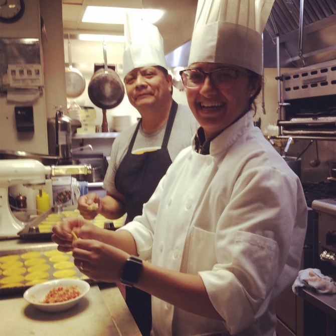 Homemade Artichokes Ravioli from Chef Rudy Duran being prepared by his team