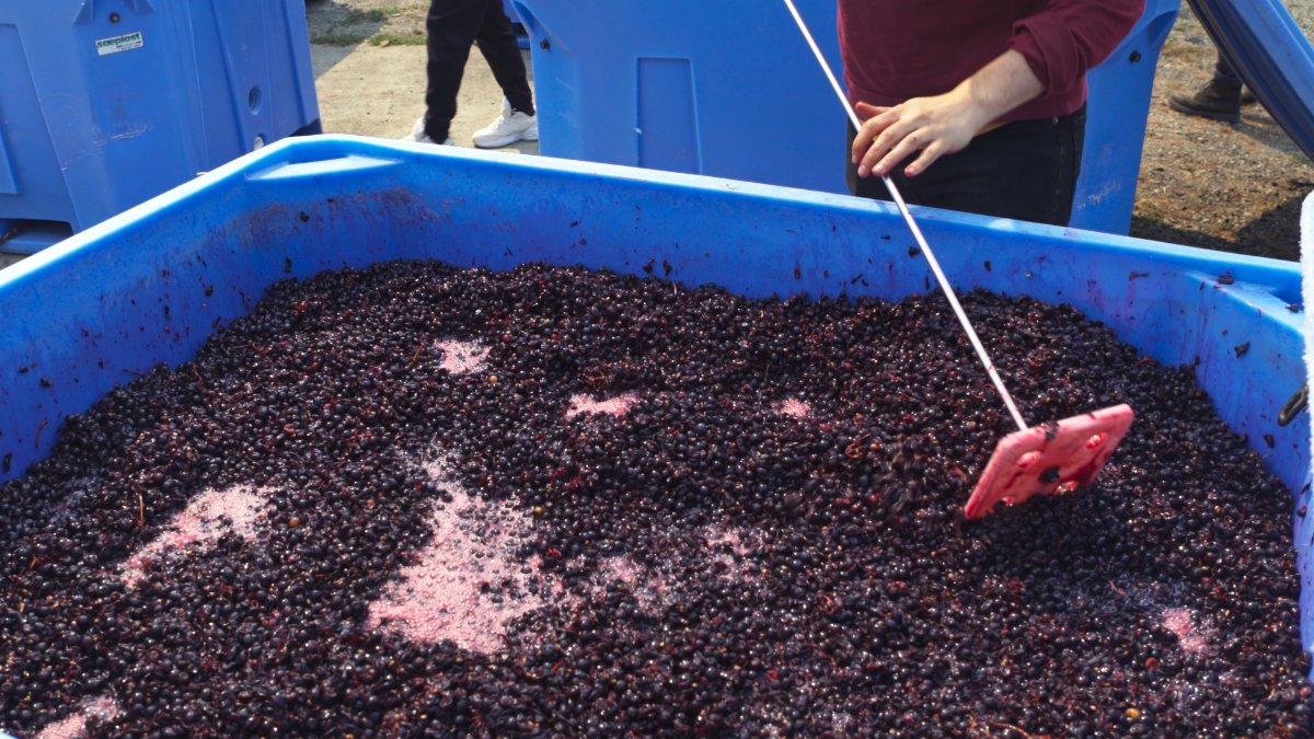 Filming in 2020 allowed Miller to show firsthand the effects of our ever-lengthening fire season as it relates to these winemakers in particular: ash and smoke can taint the grapes and render them unusable. “Smoke taint makes the wine taste like an ashtray,” says Trowbridge, “it’s like having barbeque sauce in your drink.” Miller captures the somewhat frantic harvesting by workers in masks, checking for ash before picking the grapes. No one knew what, if anything, would be usable.