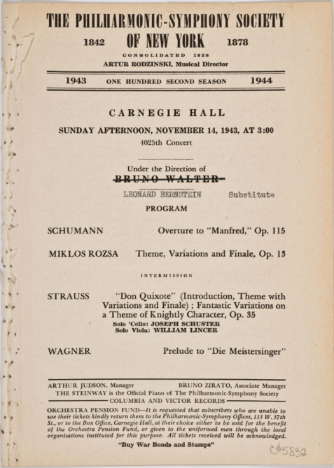 Denied the opportunity to serve in WW2 because of his asthma and unable to get a job in New York City, Bernstein admits that he considered suicide. But then, an “unheard of” thing happened—a young (at 25), American Jew was hired to be the assistant conductor of the famed New York Philharmonic. He was asked, but refused, to change his name to “Burns,” a less Jewish-sounding option. When a guest conductor had to cancel soon after his hire, Bernstein received his big break. A standing ovation, followed by a laudatory front-page New York Times review vaulted him to international fame. “Then it all began,” he recalls, “one success after another.”