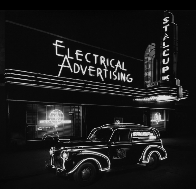 “I’ve always loved the visual beauty of neon, and the glow particularly,” explained Lawrence Johnston “I was interested in the story of neon, and I got caught up in the invention of it, and the origins, and how it spread across the world, especially through North America, changing the nightscapes of cities.”