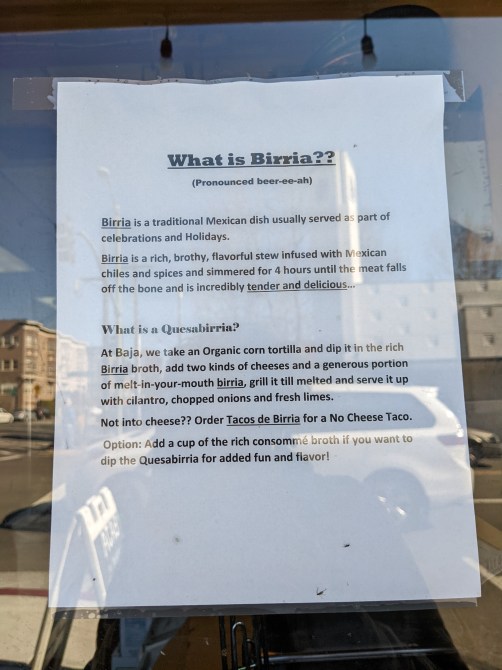 “We never really take anything off the menu,” Mogalian says. “When we’ve tried to take something off, our customers practically rioted in the streets.” (One exception: cactus salad. “I thought it was wonderful, but it was probably ahead of its time. Maybe,” Mogalian muses, “it’s time to bring it back.”) Over the years, the restaurant has added beef, calamari, Mexican lobster, wraps, Niman Ranch pork, and the latest addition: birria, the spicy, long-simmered stew associated with the cuisine of the state of Jalisco. It’s traditionally made with goat meat, but Baja Taqueria uses beef. The recipe—a four-hour slow cook—came from the restaurant’s general manager, Coco Roque, who has been with Baja Taqueria for an astonishing 25 years, starting as a cook and working her way up.