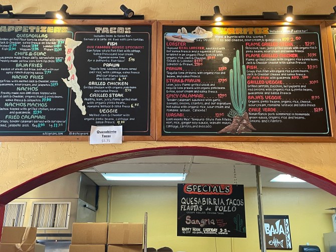 That choice alone made Baja Taqueria’s fish tacos a little different from Baja California’s fish tacos. According to a story published in USA Today’s “10Best” in May 2020, fish tacos were originally made from angelito, or angel shark. The idea of battering and frying this local cold-water fish came not from locals but from Japanese fishermen who’d come to the coastal Baja town of Ensenada in the 1950s and 1960s to ply their trade: they cooked the angelito using the tempura technique from their homeland. Soon enough, Ensenadas discovered they could improve on the original using a crisper frying method and then tossing the result into a warm corn tortilla. Ensenada fish tacos still often use angelito., as well as “shrimp, cod, yellowtail, haddock, flounder … and mako shark,” according to 10Best.