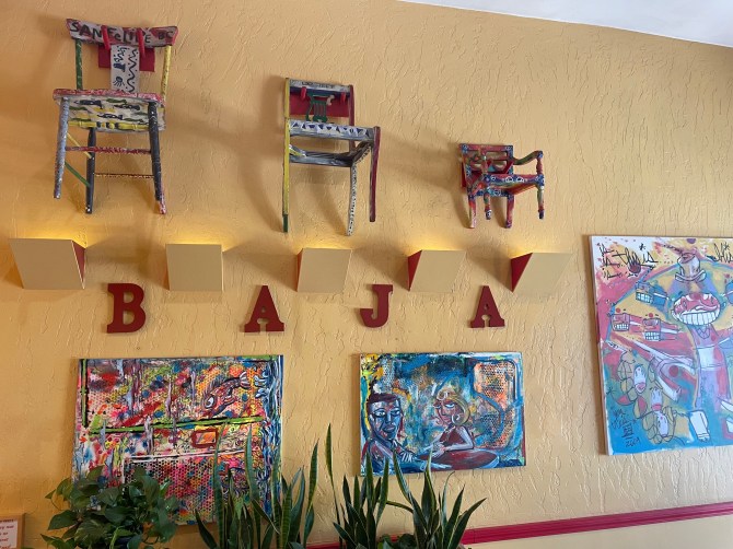 It’s not on the Baja Famous Fish Tacos menu, but owner Jeff Mogalian’s Paloma recipe would make the perfect accompaniment to takeout tacos! A little smoky (thanks to the mezcal), a little tart (from the grapefruit juice), a little picante (from the Tajín), it’s a refreshing twist on a classic Mexican cocktail.