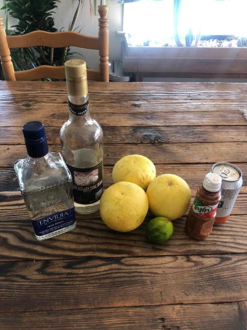 Tajín/sugar-rimmed glass (see below)
