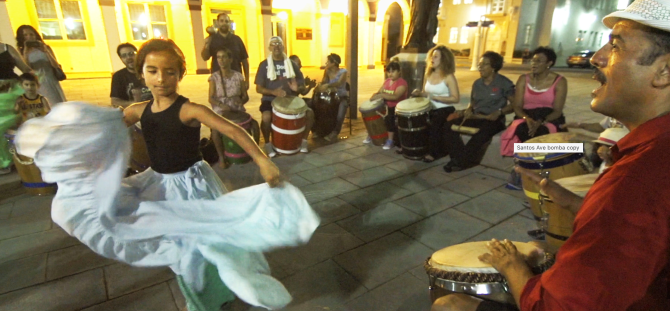 Santos: Skin to Skin, with its Premiere at the Mill Valley Film Festival, is a rich, nuanced portrait of him and his music and mission directed by Kathryn Golden. This is a cultural feast, that rare music documentary that can bridge generations and cultures through the story of one man. It’s also a primer on Afro-Caribbean music, tracing its roots back to the diaspora of slavery, and fundamentally, to the ubiquity of the drum.