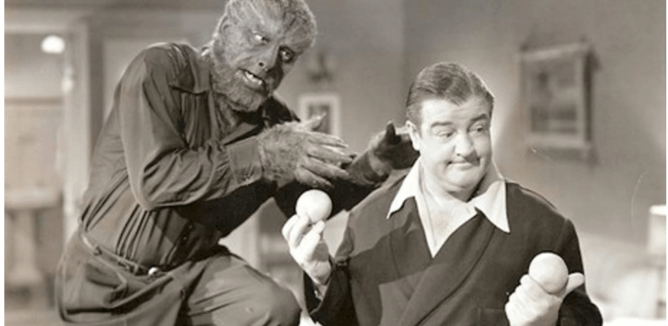 When I was about 6 or 7 I remember being scared out of my wits by that sequence in ABBOTT AND COSTELLO MEET FRANKENSTEIN where Costello is locked in a room with Lon Chaney Jr. who is slowly turning into the Wolf Man. Costello narrowly misses being pounced upon by the Wolf Man several times – I still remember hiding my eyes with my fingers, and eventually running out of the room. It was too scary. Kids really related to Lou Costello and took characters like Frankenstein and Wolfman seriously – so this was quite traumatic to me at that time. I still get goosebumps thinking about it!