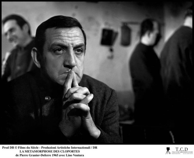 At 5 pm, there’s a triple bill (Malcolm is nothing if not generous), with three films by Pierre Granier-Deferre. Headlining the cast of Cloportes, aka The Metamorphosis of Woodlice (1965) are Lino Ventura, Charles Aznavour, Pierre Brasseur, Irina Demick, and Françoise Rosay, in a tale of revenge among thieves. La Veuve Couderc (The Widow Couderc, 1971), based on a Simenon novel, stars Simone Signoret as the widow who takes in an escaped convict, played by Alain Delon.