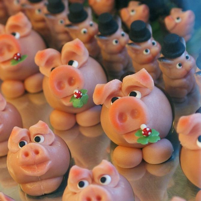 “Nowhere does luck seem luckier than in Germany and Austria, where a confectionary figure known as a geldscheisser positively excretes fortune from his marzipan bottom for the New Year. Also popular is the glücksschwein, the fortuitous pig again, this time in marzipan form. For the best fortune, it’s wise to grab a piece of his bottom and make a wish.”