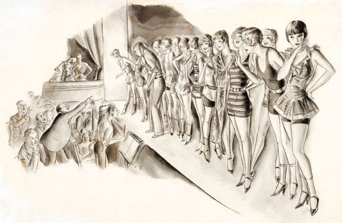 Louise Brooks inspired the appearance and personality of Hollywood showgirl “Dixie Dugan,” the title character of two slightly risqué novels written by J. P. McEvoy and illustrated by John H. Striebel. They adapted the stories to a comic strip that debuted in 1929 and over the course of the strip’s 37-year run, Dixie became a less glamorous figure with a different look who held a variety of ordinary jobs.
