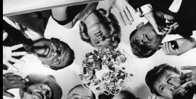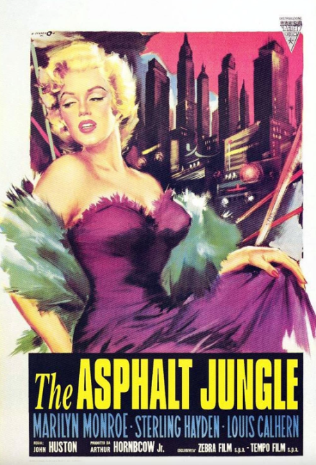 This selection is inspired by one of the best throwaway lines in all of film noir. When the bedridden wife of corrupt attorney Alonzo D. Emmerich (Louis Calhern) complains about the larcenous company he keeps, the barrister replies, “Oh, there’s nothing so different about them. After all, crime is just a left-handed form of human endeavor.” The impeccably smooth shyster is hiding the fact he’s stone-cold broke and is planning to swindle the thieves for whom he’s fencing a fortune in stolen jewels. It’s not going to turn out well for “Uncle Lon,” as he’s called by the nubile young mistress (Marilyn Monroe) he keeps on the side.
