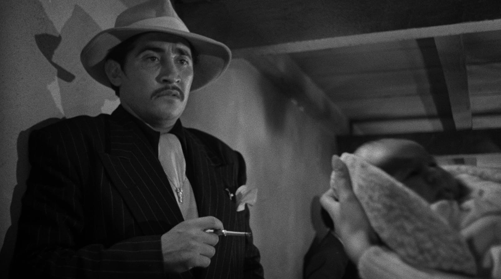 A film that virtually leaps of the screen. Rarely screened in the United States and long due for rediscovery, Victims of Sin is famed Mexican director Emilio Fernández’s unique blend of film noir, melodrama, and musical. Acting- dancing sensation Ninón Sevilla plays Violeta, a cabaret performer who rescues a baby from a garbage bin, adopting the abandoned child of Rosa (Margarita Ceballos) and the aggressively zoot-suited gangster Rodolfo (Rodolfo Acosta), Violeta’s murderous pimp. Motherhood forces Violeta to give up her career, but the kindhearted club owner Santiago (Tito Junco) saves her from a life of poverty and prostitution—until Rodolfo, freed from prison, seeks to reclaim his son.
