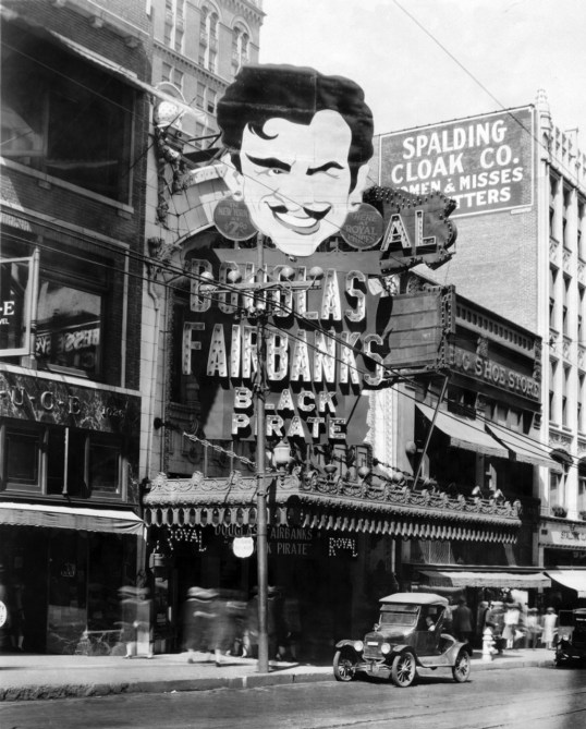 THE BLACK PIRATE, starring Douglas Fairbanks in a rousing pirate adventure with deception and romance— and some great swordplay and stunts. Wait until you see Doug sliding down the ship’s sails. One stunt that was partially faked was the kiss between Fairbanks and his romantic interest, played by Billie Dove at the film’s end. His wife, Mary Pickford, doubled for Dove.
