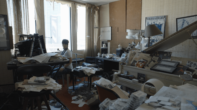 The extremely disciplined Warren, 67, shows up for work every day to the Los Angeles building she owns housing her Realsongs publishing company and studio. The public spaces have an industrial, artistic flare and are welcoming. However, the work spaces where she creates, are a disaster. Papers are in piles all over the floor, covering almost every surface, along with old newspaper clippings, outdated landline phones and cassette tapes. Mismatched floor lamps are randomly placed around the room. A couple are tipped over. There’s a Post-it Note on the wall that reads, “Don’t clean in here Thanx.”