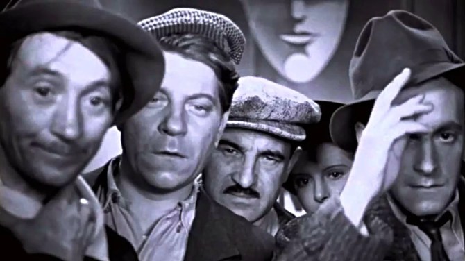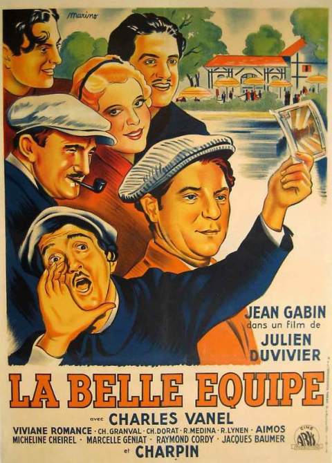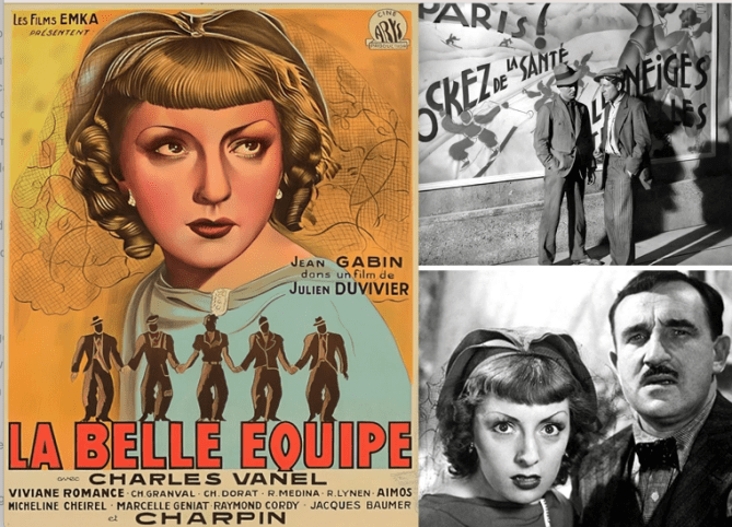 The first, of course, was LOVE IS MY PROFESSION, with the middle-aged Gabin. #2 and #3 for FRENCH 24 will showcase the young Gabin: first as an “apache” (the French term for a roughneck) in Anatole Litvak’s LILAC (1932), one of his first appearances. This is followed by the second of three consecutive films Gabin made with Julien Duvivier, LA BELLE EQUIPE (1936), where we see a more polished performer—he’s a stalwart dreamer who dreams big with his friends, purchasing a rundown tavern/bistro (the French term: “guingette”) in hopes of creating a new Paris sensation. As you can expect from its inclusion in a French noir festival, things don’t quite go as planned.