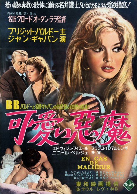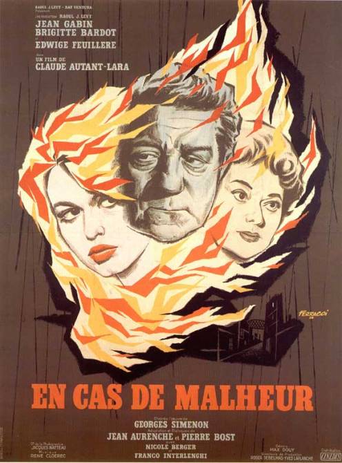 OPENING NIGHT (Thursday October 3) is a return to the “sexy” early days of the festival, with France’s two most iconic stars—Jean Gabin and Brigitte Bardot—in the only film where they appeared together. EN CAS DE MALHEUR translates to “In Case of Emergency” (the English title for the Georges Simenon novel from which the film is based), but 1958 America had a more insinuating title for it: LOVE IS MY PROFESSION.