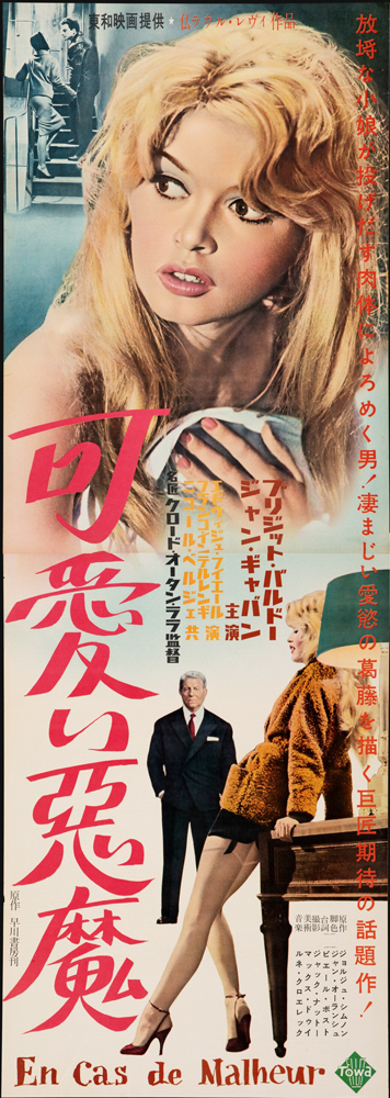 OPENING NIGHT (Thursday October 3) is a return to the “sexy” early days of the festival, with France’s two most iconic stars—Jean Gabin and Brigitte Bardot—in the only film where they appeared together. EN CAS DE MALHEUR translates to “In Case of Emergency” (the English title for the Georges Simenon novel from which the film is based), but 1958 America had a more insinuating title for it: LOVE IS MY PROFESSION.