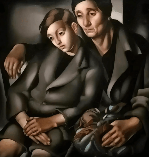 Julie Rubio: We now know that, despite outward appearances, Tamara was tormented by the events that transpired during her lifetime. “The Refugees,” painted in the 1930’s, is one of her important paintings that reveals her personal struggle when fascism was on the rise and Europe was in upheaval. She lost her first country, Russia, during the Bolshevik Revolution and escaped as a refugee to Paris. Her second husband, Baron Raoul Kuffner, was Jewish and bi-sexual. She saw what was coming with Hitler and devised their escape plan and got out just in time, again as refugees. She lost some family in the Holocaust. She had to deal with sexism, antisemitism, ageism—all those horrible isms—and still demanded to be seen in a world that did not want to see women or Jews or LGBQAI or anything that she was. In the film, Roxana Velásquez, executive director of the San Diego Museum of Art, nails it when she says “she’s a surviving animal.” Roxanna also calls Lempicka one of “the most valued and important artists of the 20th century,” without sticking in the qualifier female.